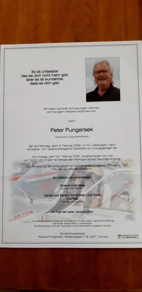 dass unser lieber Freund Peter Pungersek heute nach längerer